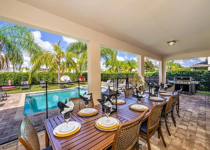 Epic 10Min Disney Fun Villa, Mini Golf, Arcade, Theater has an equipped kitchenette with tea and coffee making equipment, a refrigerator, and kitchenware for a comfortable stay. Orlando International airport is 45 km away, while Church Street train stop is 100 minutes' drive from Epic 10Min Disney Fun Villa, Mini Golf, Arcade, Theater. This accommodation has a terrace to relax on after a busy day, along with a private swimming pool.